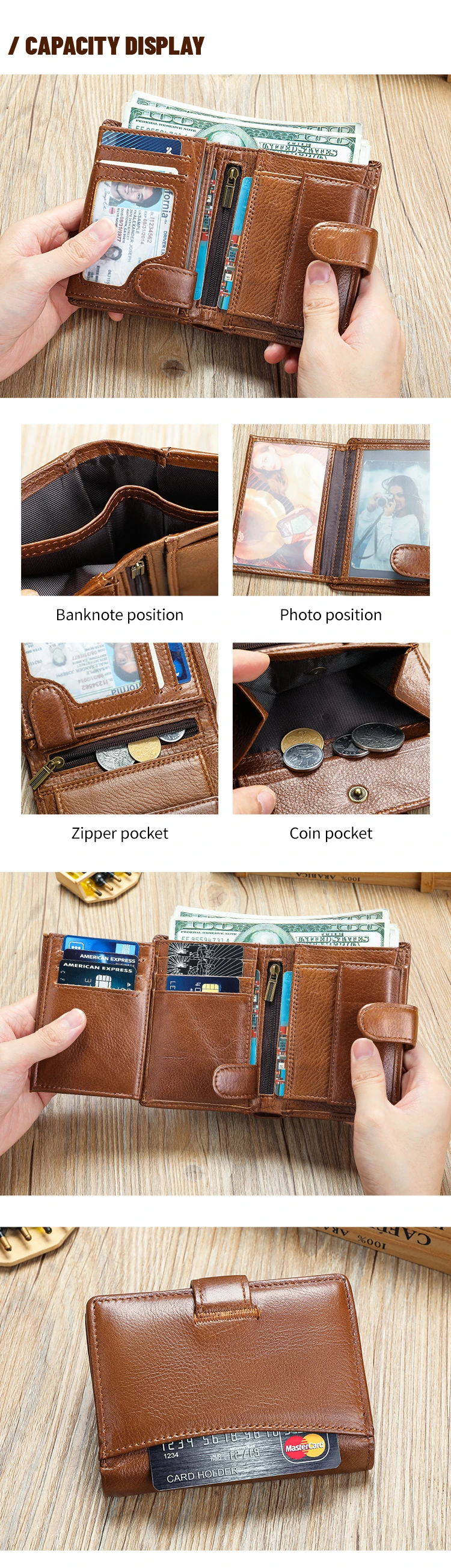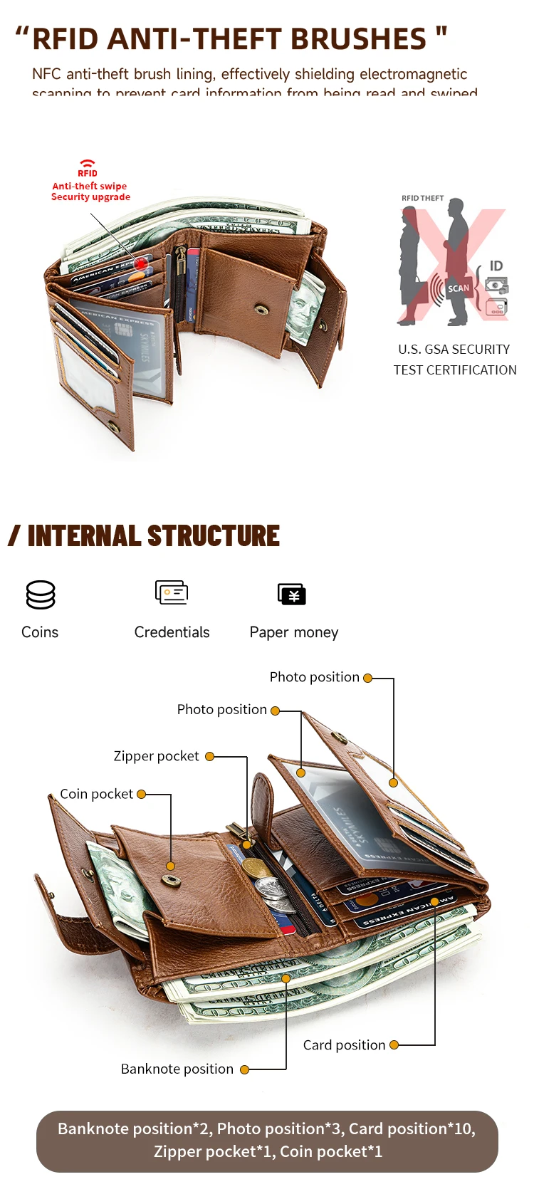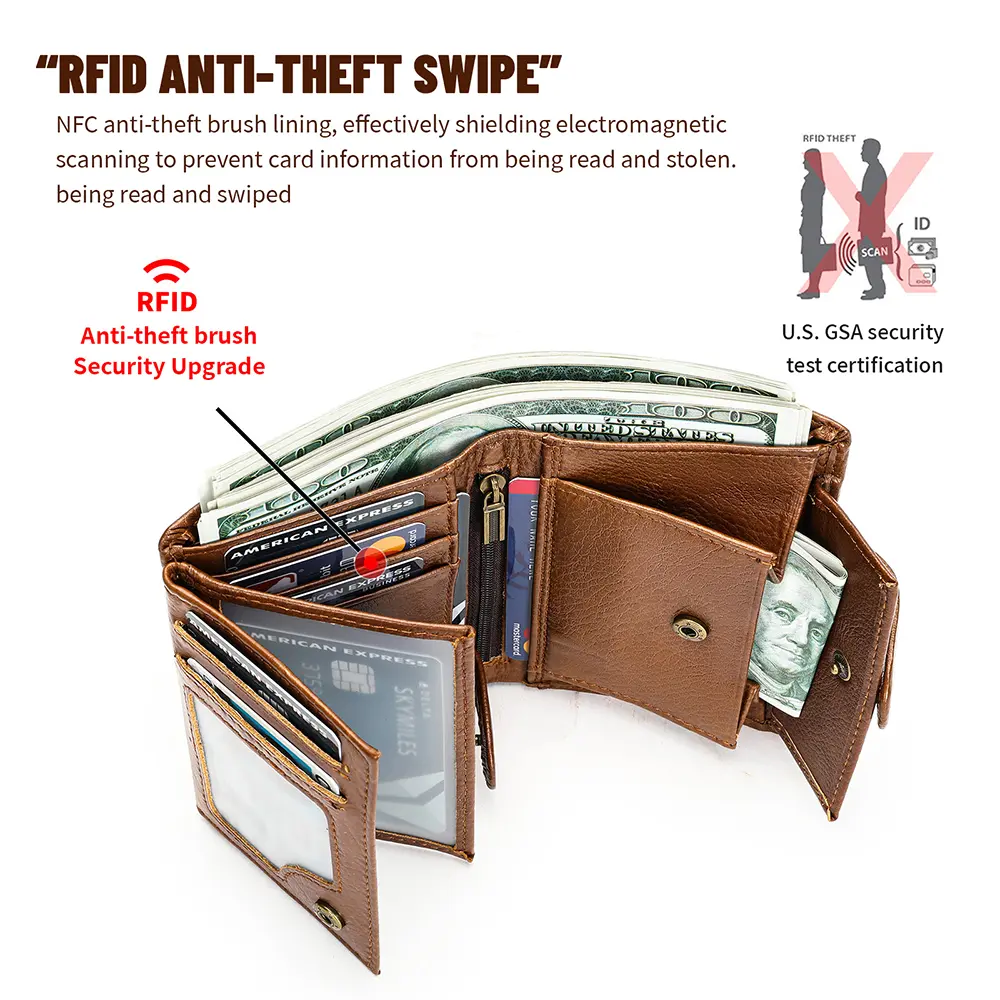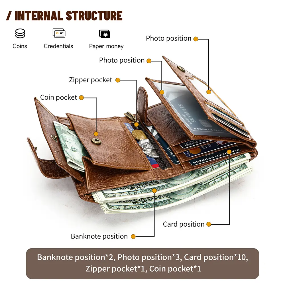 Genuine Leather Wallet Men Anti-theft RFID Blocking Wallet Coin Pouch